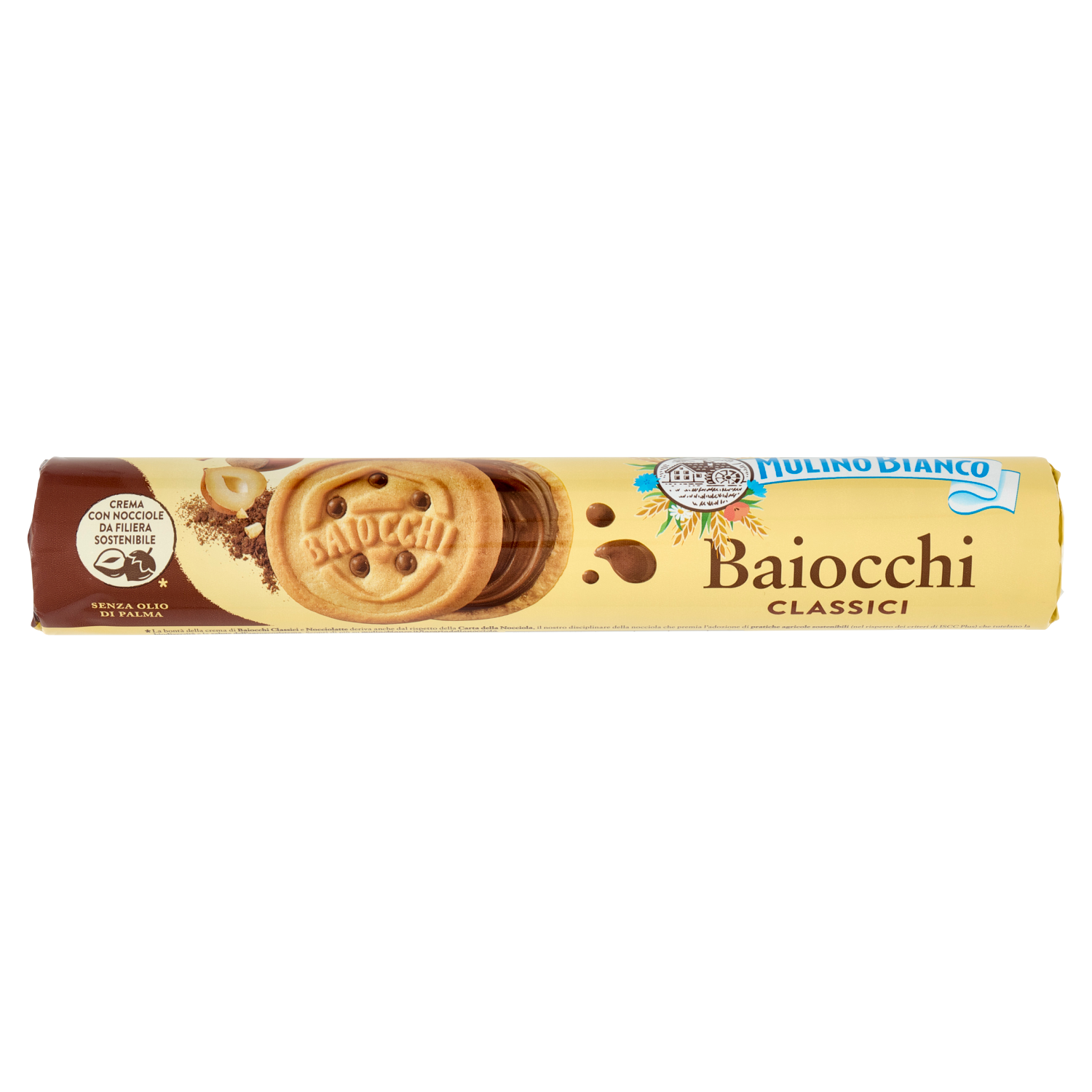 Traškūs itališki sausainiai, pagaminti iš kvietinių miltų ir užpildyti švelniu kakavos ir lazdyno riešutų kremu. Tobulas derinys saldumynų pertraukėlei ar prie kavos puodelio. Be konservantų ir dažiklių.